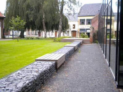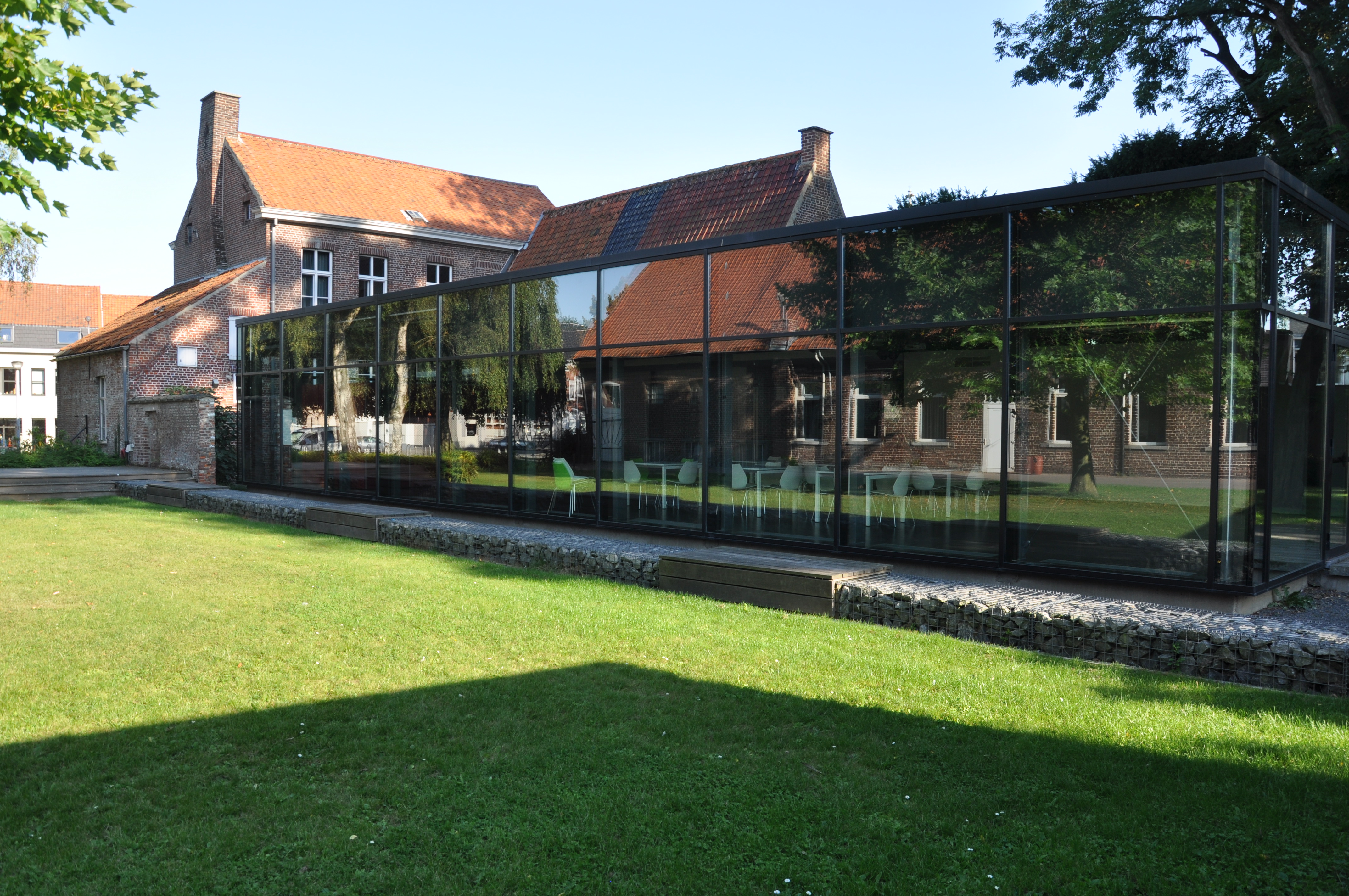 In de deelgemeente Rollegem staat op het dorpsplein een statig huis met een symmetrische gevelopbouw. De uitbreiding van dit bakstenen volume met een bijna volledig beglaasd deel valt nauwelijks op. De uitbreiding bevat een grote zaal zonder kolommen en een polyvalente ruimte. Vanuit het interieur is er een directe visuele band met de naast gelegen tuin. Het is een buurthuis dat zich perfect weet in te passen in het dorpsweefsel.
